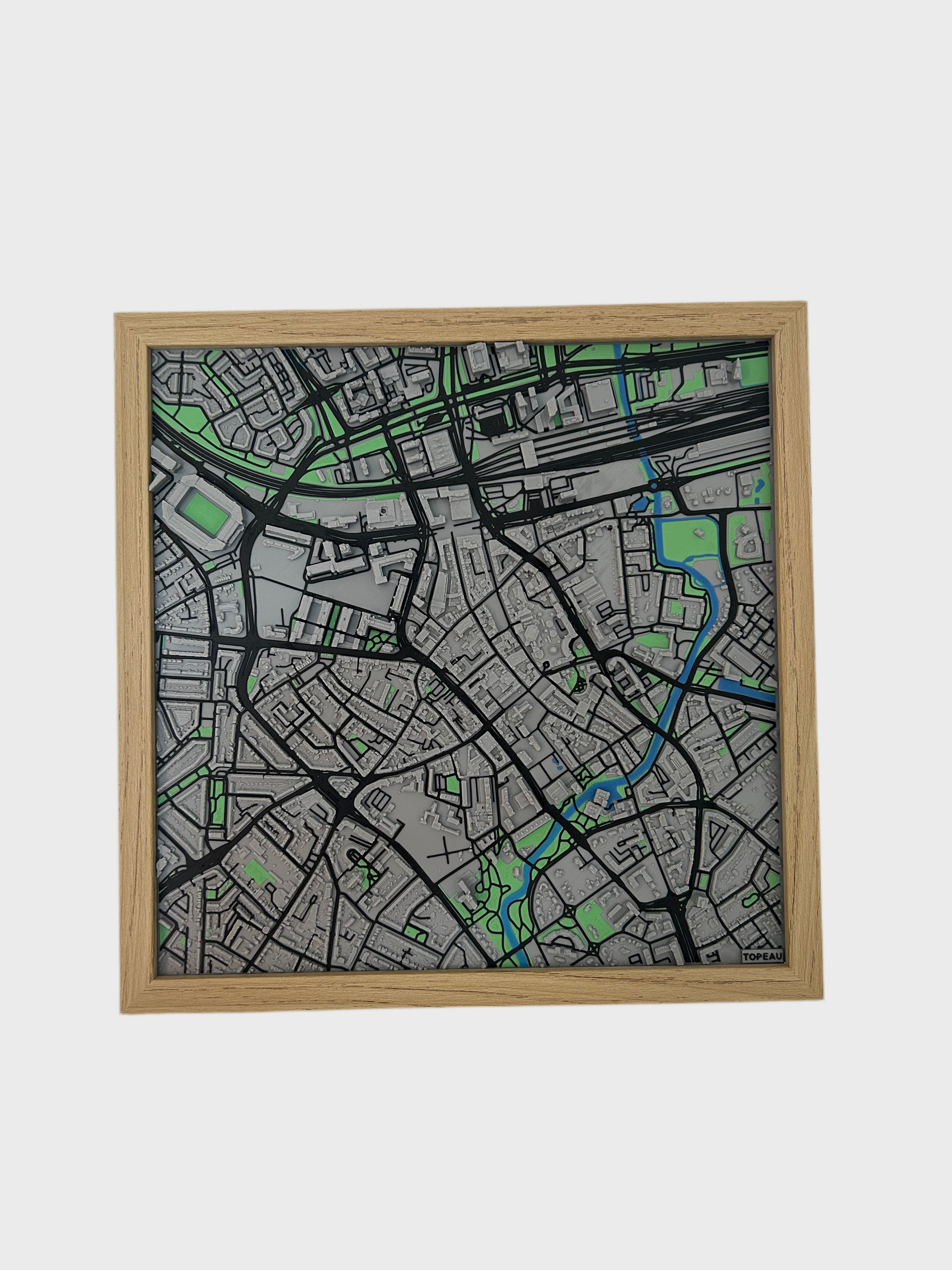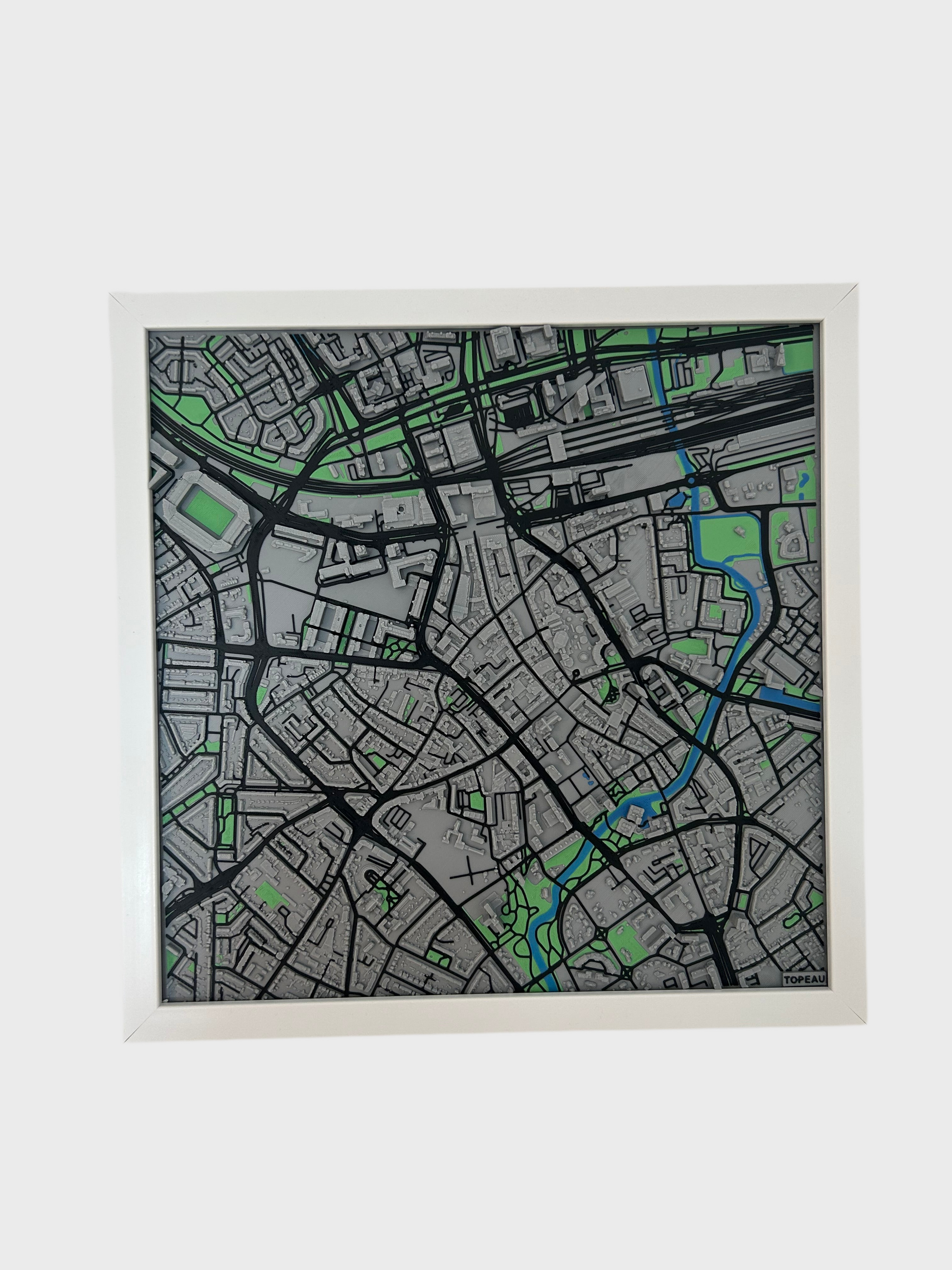 Ontdek de dynamiek van Eindhoven als nooit tevoren met dit unieke 3D-geprinte kunstwerk! Deze uitzonderlijk gedetailleerde plattegrond van 20x20 cm transformeert de lichtstad in een tastbaar, modern reliëfschilderij. Van de iconische lichttoren tot de innovatieve High Tech Campus, elk kenmerk is met precisie vastgelegd, wat zorgt voor een fascinerend perspectief op Eindhoven vanuit vogelvlucht.