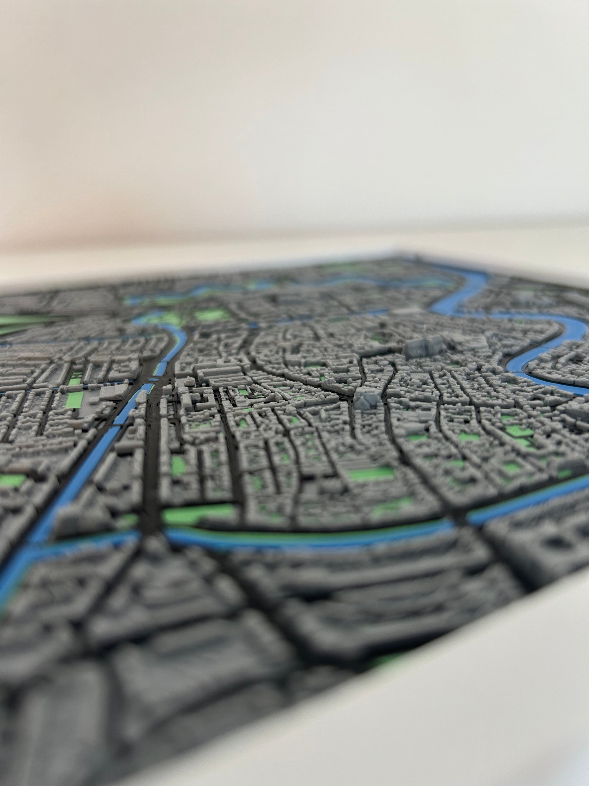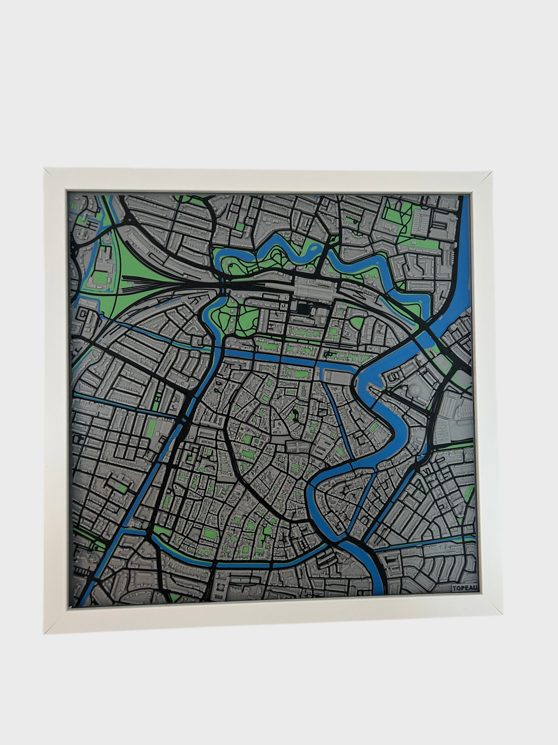 Ontdek de historische grandeur en artistieke flair van Haarlem als nooit tevoren met dit unieke 3D-geprinte kunstwerk! Deze uitzonderlijk gedetailleerde plattegrond van 20x20 cm transformeert de hoofdstad van Noord-Holland in een tastbaar, modern reliëfschilderij. Van de imposante Grote Kerk en de charmante hofjes tot de kronkelende grachten en de levendige Grote Markt, elk kenmerk is met precisie vastgelegd, wat zorgt voor een fascinerend perspectief op Haarlem vanuit vogelvlucht.