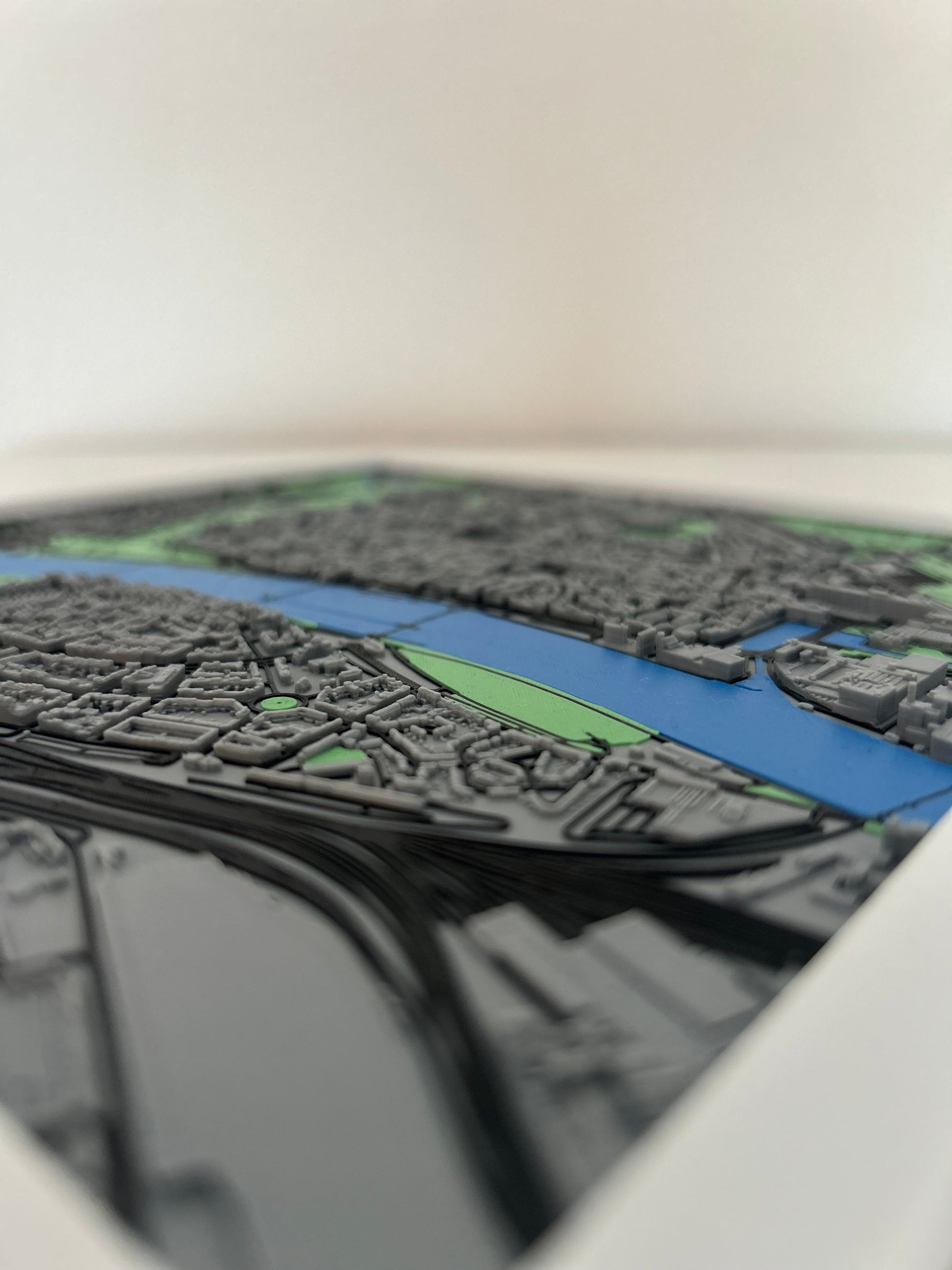 Ontdek de historische pracht van Maastricht als nooit tevoren met dit unieke 3D-geprinte kunstwerk! Deze uitzonderlijk gedetailleerde plattegrond van 20x20 cm transformeert de Limburgse hoofdstad in een tastbaar, modern reliëfschilderij. Elk gebouw, elke steeg en elke bocht van de Maas is met precisie vastgelegd, wat zorgt voor een fascinerend perspectief op Maastricht vanuit vogelvlucht.
